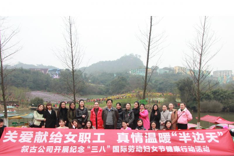 陽春三月,桃花正開。在這個陽光明媚的日子里,為展現(xiàn)公司女職工和諧健康的時代風(fēng)采,引導(dǎo)和激勵廣大女職工創(chuàng)先爭優(yōu)、建功立業(yè),促進(jìn)公司的健康穩(wěn)步發(fā)展。3月8日,公司工會組織31位女職工到瀘州納溪花田酒地開展主題為“關(guān)愛獻(xiàn)給女職工,真情溫暖半邊天”紀(jì)念“三八”國際勞動婦女節(jié)健康行動活動。公司工會主席、紀(jì)委書記李興明,黨群辦、辦公室、運營處負(fù)責(zé)人參加了此次活動。
