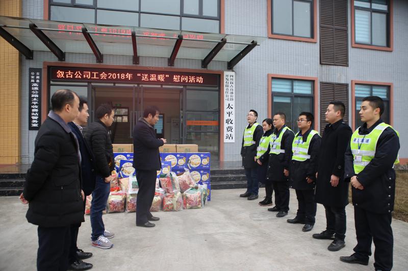 凜冽的寒風擋不住送關懷的腳步,深冬的嚴寒冷卻不了送溫暖的心。2月9日上午,公司紀委書記、工會主席李興明帶領黨群工作處、運營收費處、紀檢監察處等有關負責人深入古藺東站和太平收費站,為一線職工送去食用油、糖果、干貨等春節慰問品,并預祝大家新春快樂。