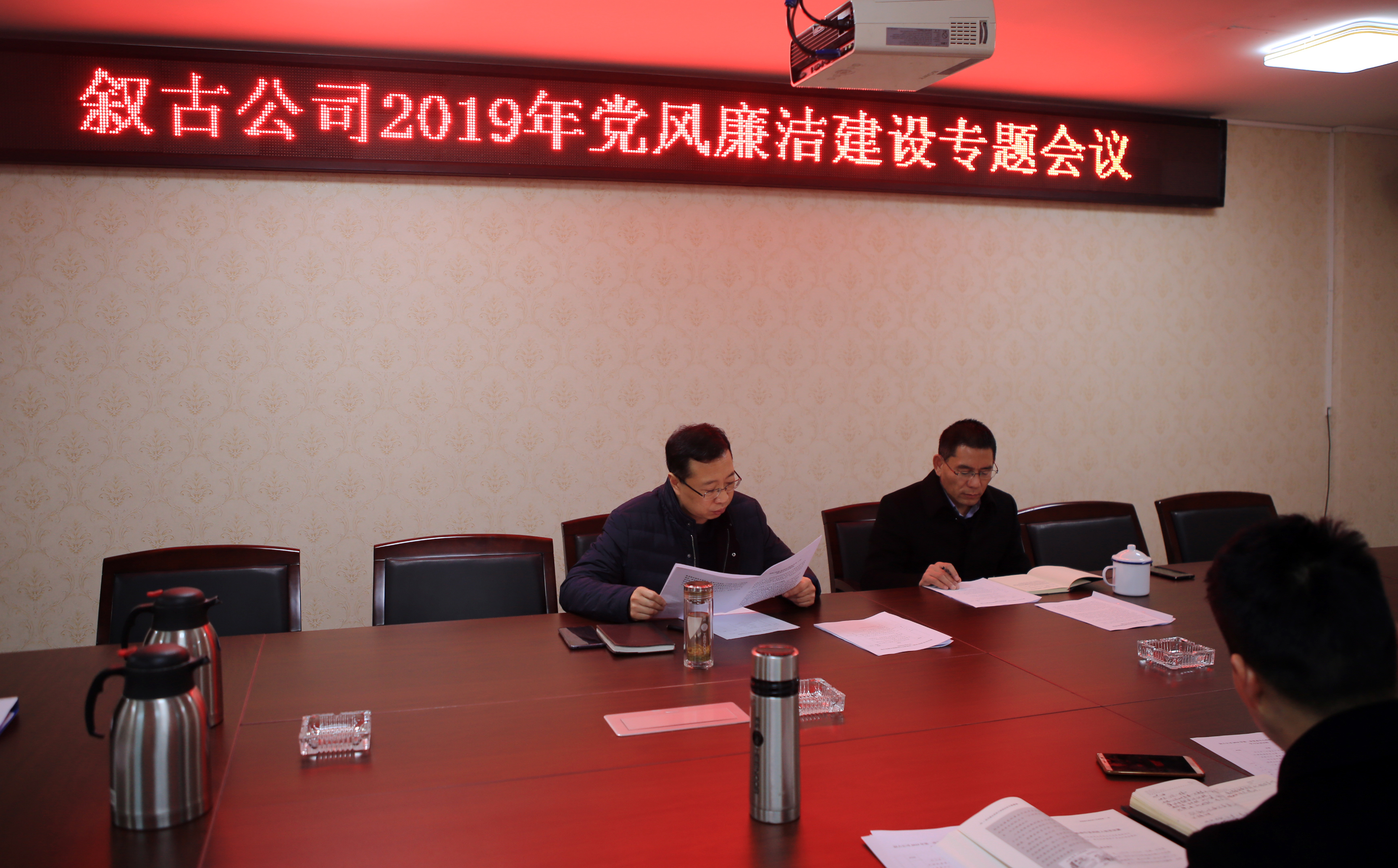 為加強公司黨風廉潔建設,筑牢拒腐防變思想防線,預防和杜絕職務犯罪,進一步樹立和弘揚清正廉明的優良風氣,2019年1月16日,公司黨委書記、董事長王中林在二樓會議室主持召開敘古公司2019年黨風廉潔建設專題會議,公司領導班子成員、黨群工作處和紀檢監察處負