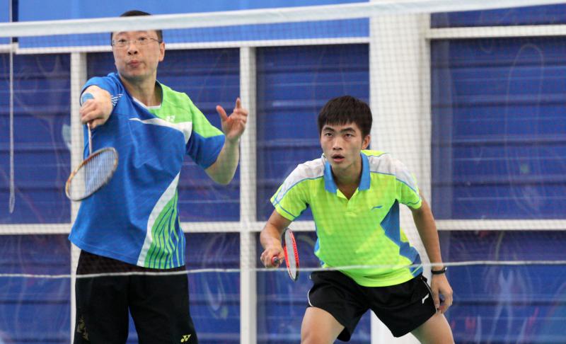 公司羽毛球健兒全神貫注