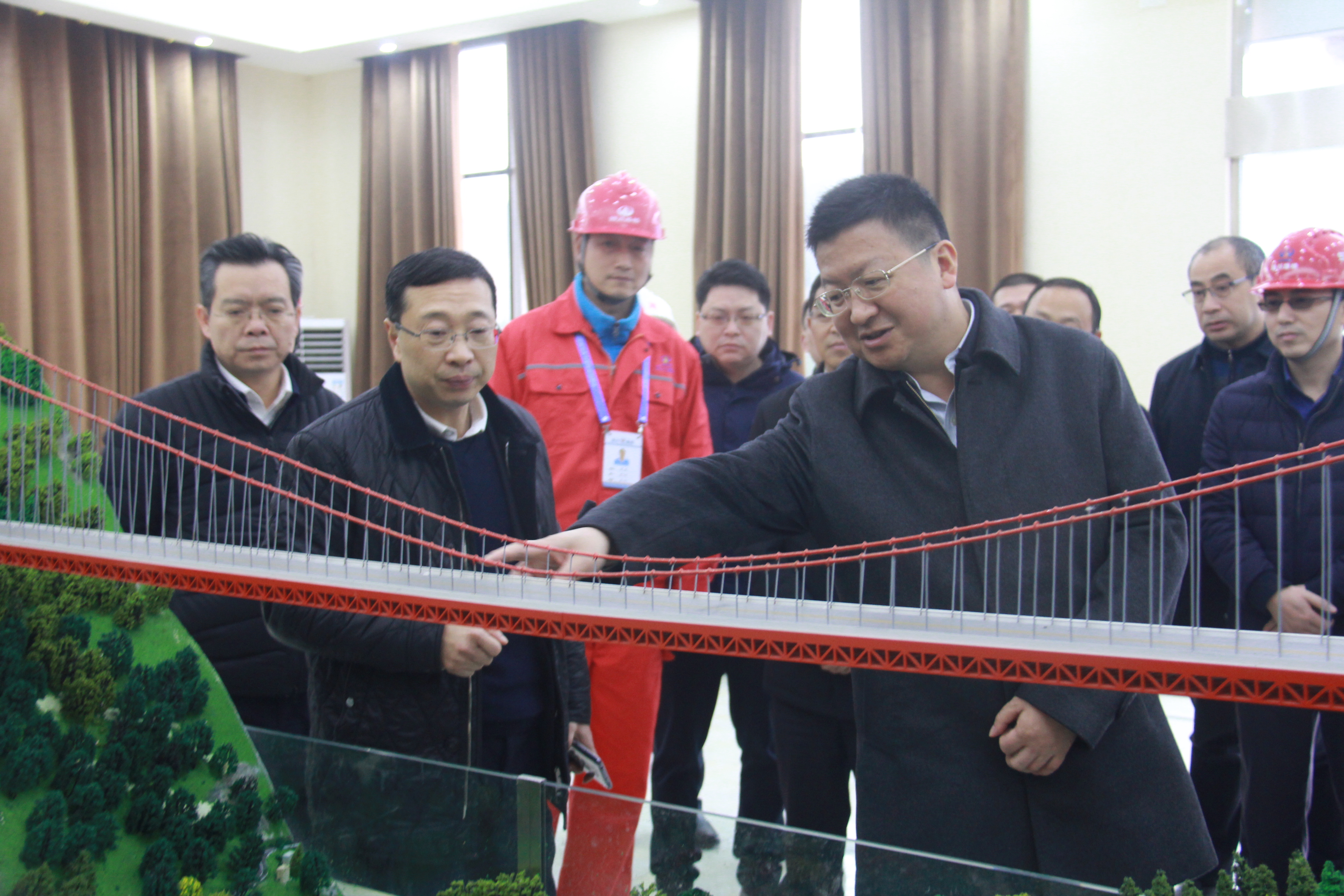 2月14日,省交通運輸廳黨組書記、廳長汪洋在公司總經理劉小波、總工程師熊雪飛等陪同下蒞臨敘古高速公路赤水河大橋調研指導工作。在赤水河大橋(四川岸)項目經理部,汪洋廳長查看了赤水河大橋立體模型,觀看了赤水河大橋形象宣傳片,認真聽取了劉小波總經理對大橋簡介、施工重難點、建設進度及后期旅游開發等相關情況的匯報。