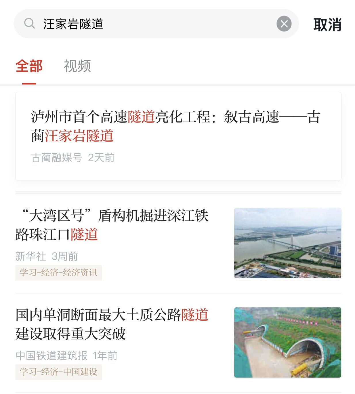 敘古高速汪家巖隧道獲學習強國和四川電視臺關注報道