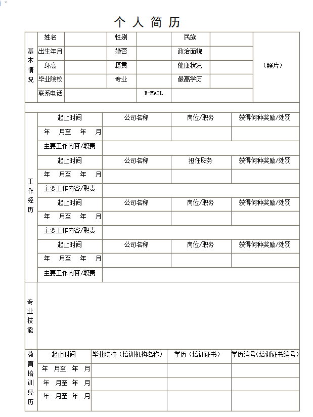 2.報名方式:將個人簡歷(簡歷模版附后,需附個人寸照)、電力行業從業資格證等打包發送至郵箱182308848@qq.com,郵件名稱請注明“應聘機電+姓名”,如“應聘機電+張三”。