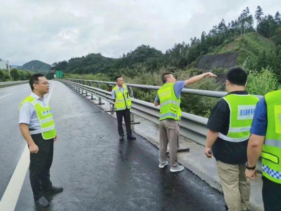 7月23日,瀘渝公司黨委書記、董事長譚偉帶隊到敘威高速開展汛期風險隱患專項排查工作,公司黨委委員、職工董事、工會主席、副總經理陳學勤,工程養護部、安全環保部相關人員陪同。