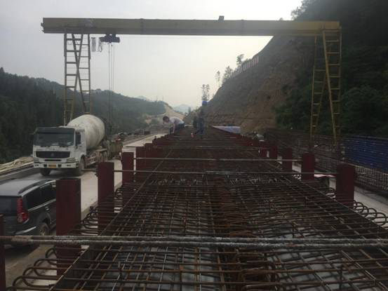 敘古高速公路后期控制性工程青龍臺(tái)大橋預(yù)制場首片T梁順利澆筑