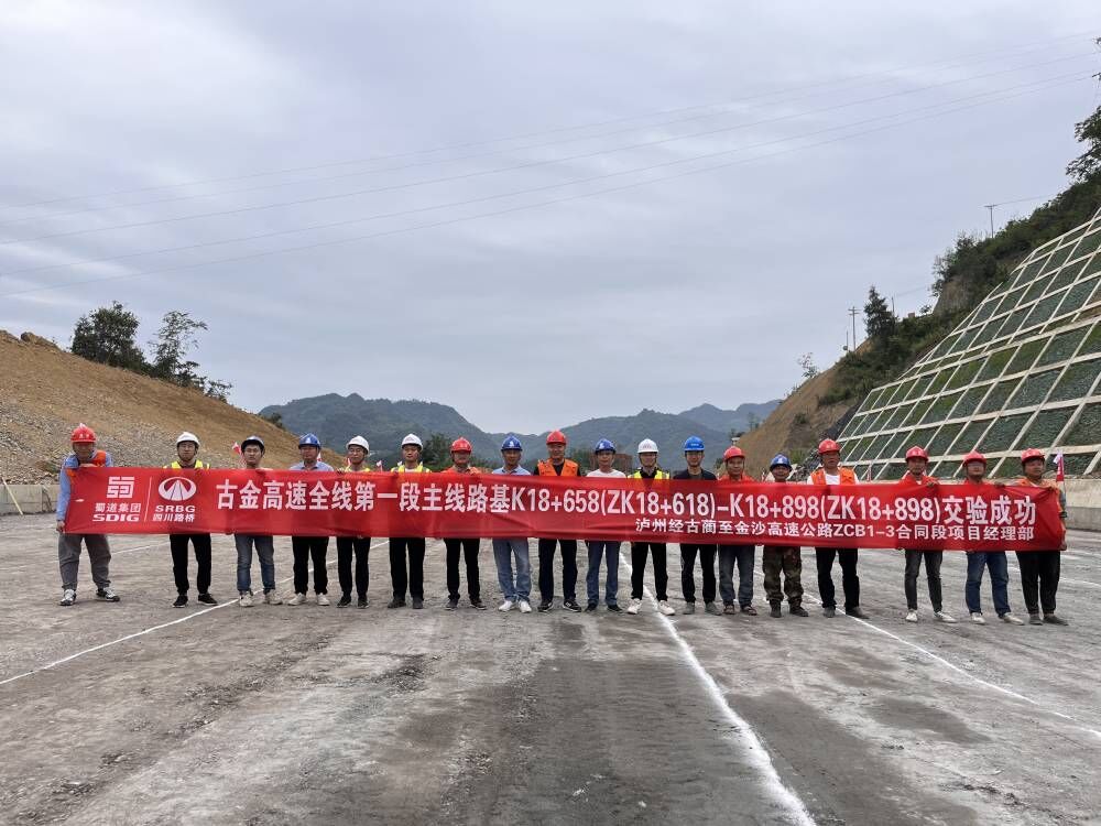 6月11日,由蜀道高速集團川黔公司投建的古金高速ZCB1-3項目路基K18+658(ZK18+618)-K18+898(ZK18+898)成功交驗,標(biāo)志著全線首個主線路基段落順利交驗,拉開了古金高速公路路面施工序幕。