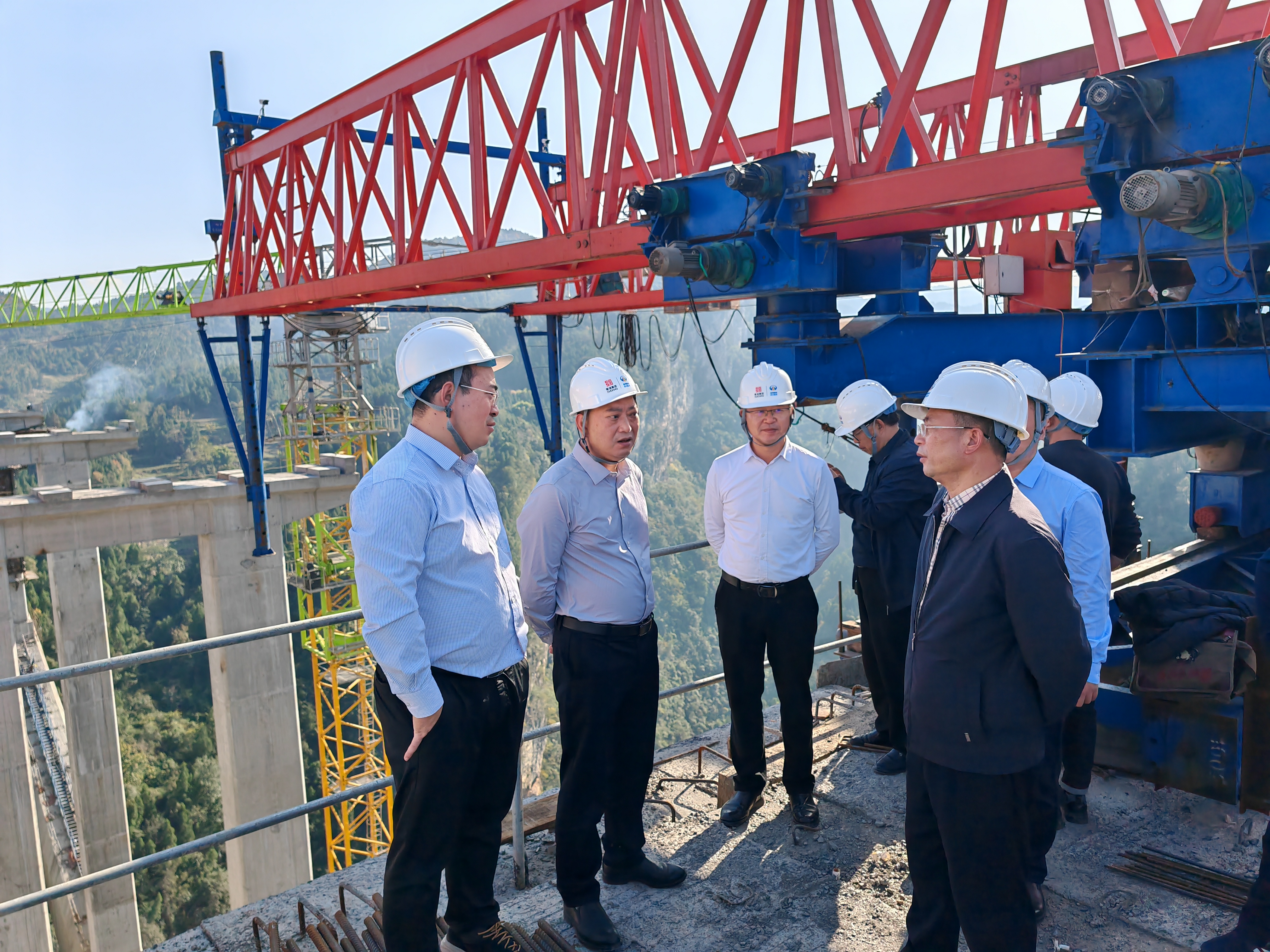 蘭杰一行深入古金高速水落河特大橋、赤水河特大橋、白泥互通、觀文互通、龍山互通、永樂(lè)樞紐和棄土場(chǎng)等施工現(xiàn)場(chǎng),聽(tīng)取了川黔公司、古金高速各施工單位總體建設(shè)推進(jìn)情況匯報(bào),詳細(xì)了解了項(xiàng)目存在的問(wèn)題及下一步計(jì)劃安排。