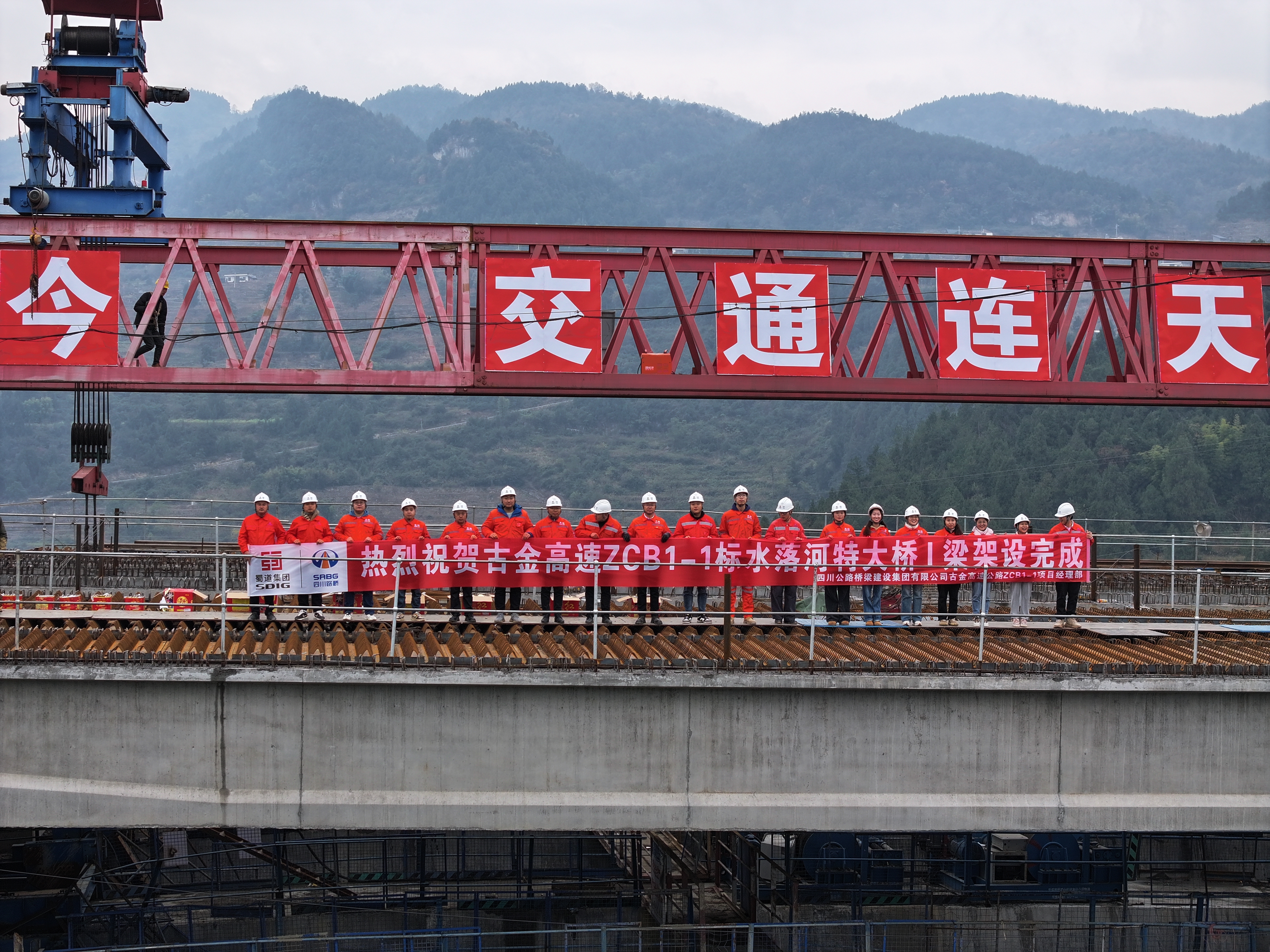 12月18日,隨著架梁機上最后一片預制梁穩穩落下,古金高速水落河特大橋預制梁全部順利架設完成,為古金高速全線建成通車奠定堅實基礎。